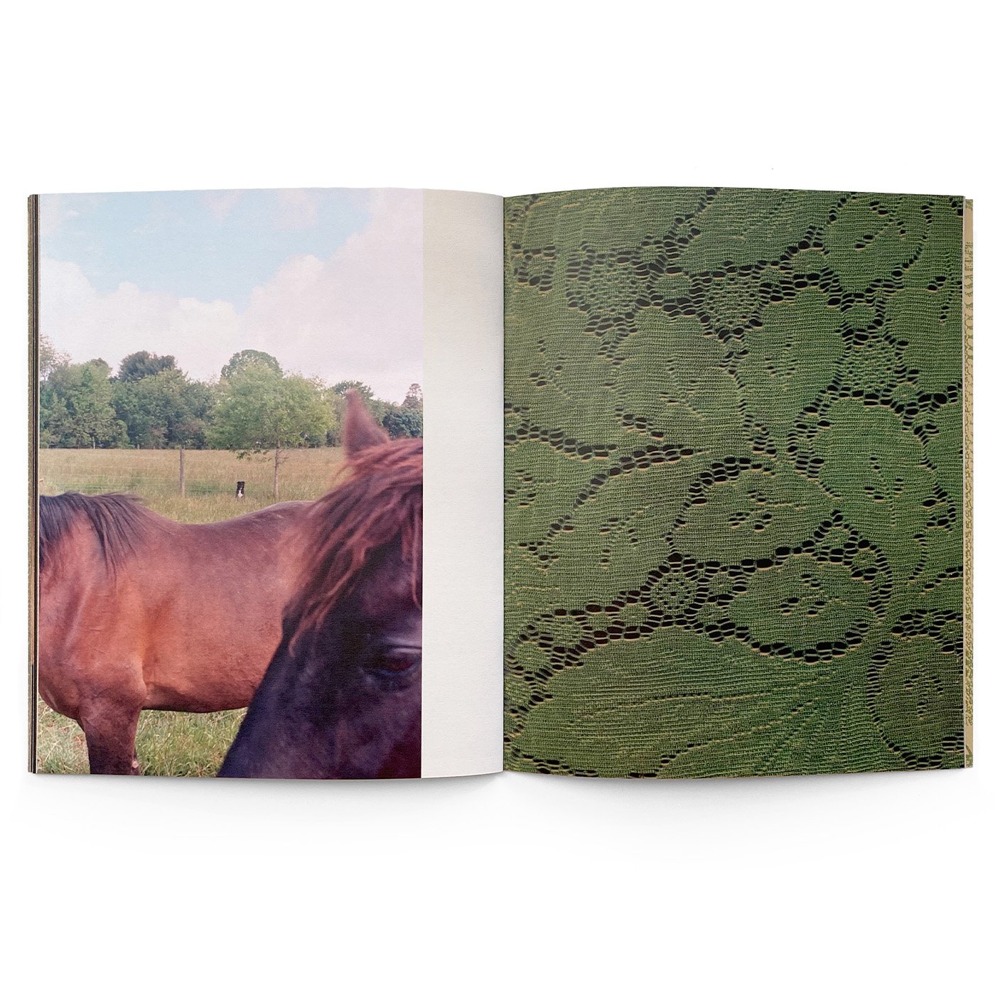 ‘I See You in Me’ is a personal reckoning and recollection of tradition in America. Through photos taken in the Carolinas, collages made from NatGeo magazines and postcards from the early 20th century, Wright revisits the small beauties of the American South and the nuances of race. Motifs of family, religion and nature are found in between textiles becoming a journal of history and remnants of Wright’s upbringing.